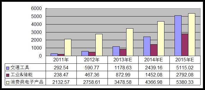 在這個市場,鋰離子電池需求的增長主要來自于兩方面:一是產(chǎn)品本身的智能升級對電池用量的需求在增長;二是新產(chǎn)品產(chǎn)生了新的市場需求。對于傳統(tǒng)功能手機,可能700mAh的電池就足夠了,但對于智能手機,2000mAh都顯得不夠。至于后者,突出的例子是平板電腦產(chǎn)品自2010年推出以來,到2012年迅速取得了1.3億臺的年銷量,為智能手機、平板電腦等充電的移動電源產(chǎn)品市場2012年極其火爆,銷量達到了驚人的100多萬kWh,是2011年的數(shù)倍。