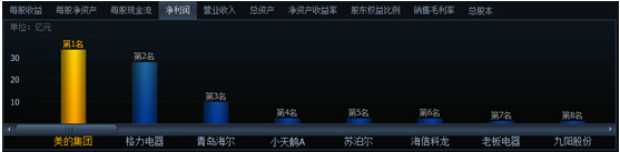 青島海爾2014年實現(xiàn)收入887.8億元,同比增長2.5%;歸屬于母公司股東的凈利潤49.9億元,同比增長19.6%;而美的集團2014年則實現(xiàn)營業(yè)總收入1423億元,同比增長17%,實現(xiàn)歸屬于母公司凈利潤105億元,同比增長44%;格力電器表現(xiàn)也很出色,2014年營業(yè)總收入1400.05億元,較上年同期增長16.63%,凈利潤141.55億元,較上年同期增長30.22%。