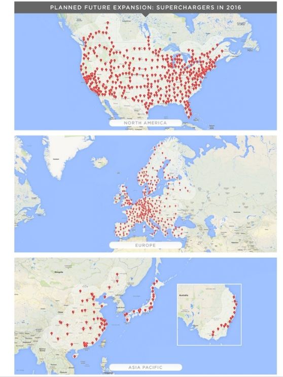 附:2016年特斯拉充電網(wǎng)絡(luò)建設(shè)全球分布圖