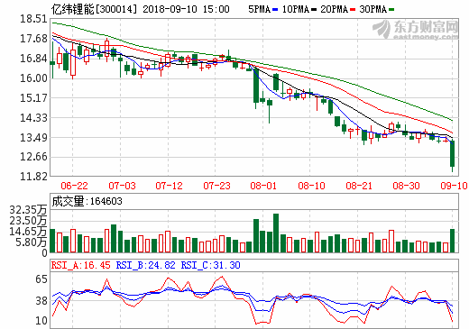 10日鋰電池概念股盤后統(tǒng)計 億緯鋰能跌幅8.48%