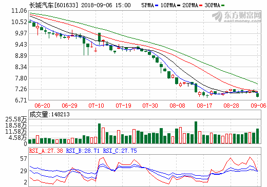 6日新能源汽車概念股盤后統計 長城汽車跌幅3.52%
