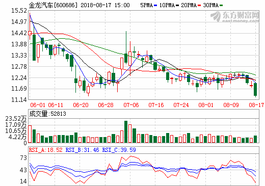 17日新能源汽車概念股盤后統計 金龍汽車跌幅4.39%