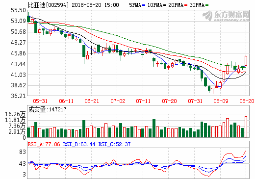 20日新能源汽車概念股盤后統計 比亞迪漲幅6.57%