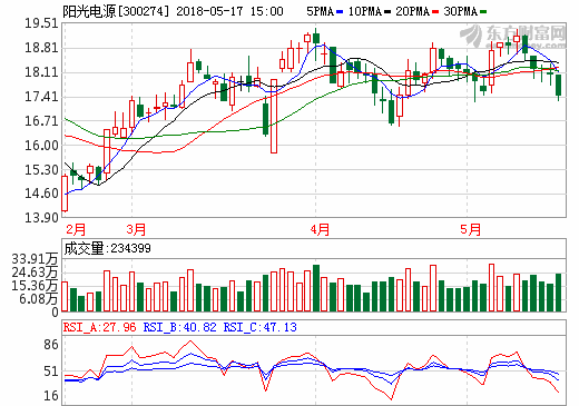 17日充電樁概念股盤后統計 陽光電源跌幅3.28%
