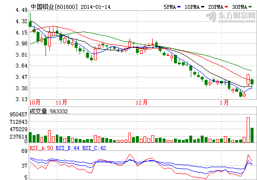 大智慧阿思達克通訊社1月14日訊 有色金屬板塊未能延續2014年第一波上漲行情。中國鋁業(601600.SH)今開盤跌幅超4%。多位業內人士表示,中國鋁業昨日大幅上漲可能是利好比較集中,公司預告扭虧、印尼禁止原礦出口和上榜首批符合鋁行業規范條件企業名單等因素可能都刺激其股價短期上漲,利好難持續。