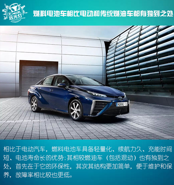 除了對比電動汽車的巨大優勢,其相較燃油車(包括混動)也有獨到之處,首先在于它的環保性,氫燃料電池車的排放物僅僅是水,比起燃油車的尾氣污染優勢明顯;其次其結構更加簡單,便于維護和保養,故障率相比較也更低。