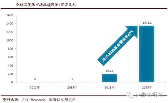 權(quán)威機(jī)構(gòu)預(yù)計(jì),至2023年,石墨烯將主要用于以下幾個(gè)領(lǐng)域:超級(jí)電容器領(lǐng)域、鋰離子電池材料、觸摸屏、增強(qiáng)型復(fù)合材料、傳感器以及高性能計(jì)算機(jī)等領(lǐng)域,市場(chǎng)空間廣闊。