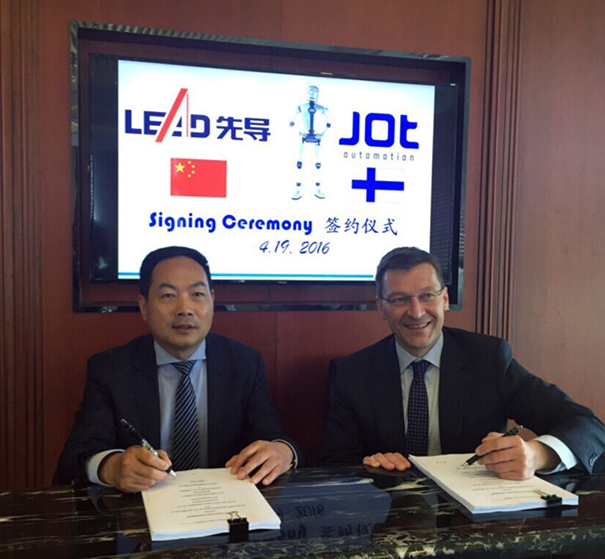 先導(dǎo)智能董事長(zhǎng)王燕清與JOT公司代表簽署收購(gòu)協(xié)議