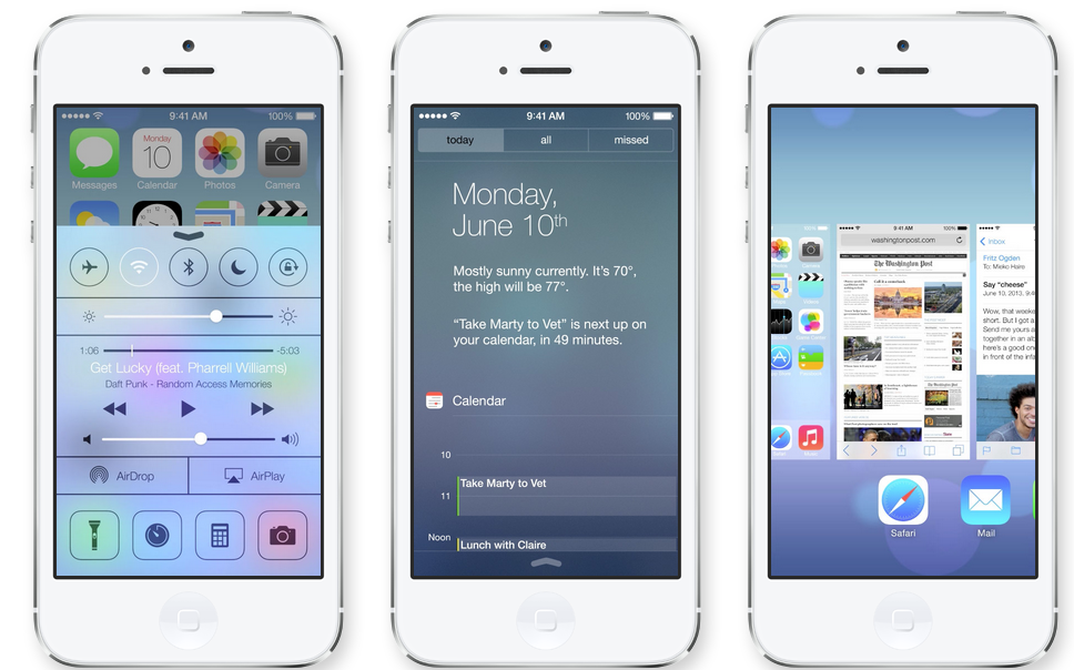 用戶界面重新設(shè)計:首先,iOS 7終于對iOS“改頭換面”。正如媒體報道,新版iOS由蘋果負(fù)責(zé)工業(yè)設(shè)計的高級副總裁喬納森·艾維(Jonathan Ive)主導(dǎo),完全拋棄了以往的風(fēng)格,變得更加扁平和簡約。