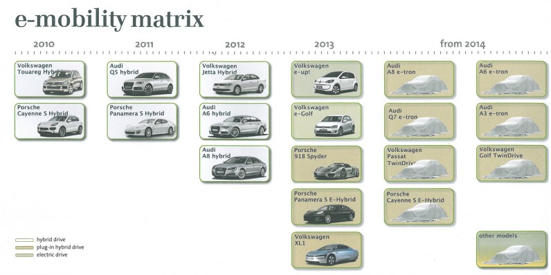 據(jù)美國媒體motortrend9月17日報道,在今年的法蘭克福車展上,大眾集團(tuán)向媒體部分透露了未來幾年旗下插電式混合動力車的計劃,部分大眾、奧迪和保時捷三大品牌。 據(jù)圖片展示,有7款新車將會
