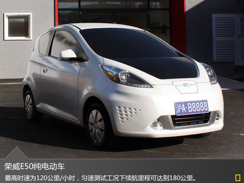 榮威E50純電動車的最高時速可以達到120公里/小時,勻速測試工況下續航里程最高為180公里。榮威E50的充電方式有快慢兩種,慢充可用家用220V插座充電,然而快充可在30分鐘內將電池充滿80%,可有效消費者縮短充電時間長所帶來的不便。
