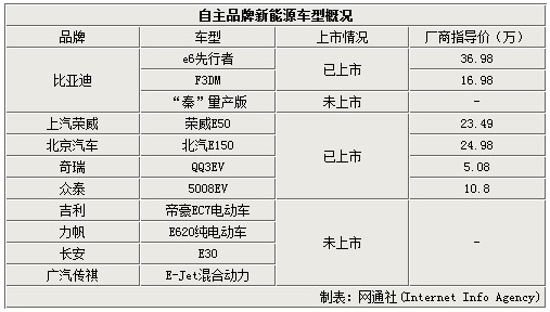 在比亞迪品牌率先進入新能源領域并獲得高關注后,國內其它的自主廠商自然不會將這塊“蛋糕”拱手相讓。網通社從北京汽車方面了解到,北汽E150電動車目前已正式面向私人銷售,盡管首批購買名額僅限500臺,但是它標志著北京汽車旗下純電動車正式面向個人消費者開發購買。另外在去年11月,上汽榮威旗下的首款純電動車榮威E50也正式上市,這也標志著更多新能源車型進入消費者家中的選擇正不斷增多。那么接下來就讓我們一起來看看,目前市場中哪些自主廠商已推出或將要推出新能源車型。