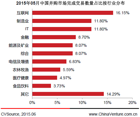 圖3 2015年05月中國并購市場完成交易數量按行業分布