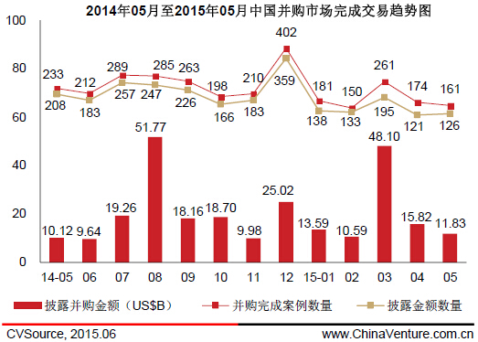 圖2 2014年05月至2015年05月中國并購市場完成交易趨勢圖