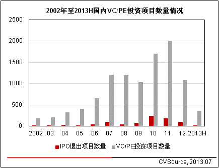 圖6 2002年至2013H國內VC/PE投資項目數量情況