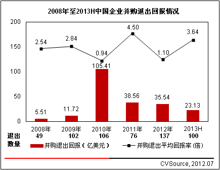 圖8 2008年至2013H年中國企業并購退出回報情況