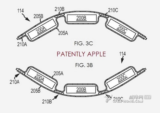如果這項(xiàng)專利最終得以應(yīng)用,哪款設(shè)備將會受益?有人猜測是 iWatch,也有人說可能是搭載柔性屏幕的 iPhone 手機(jī)。光從專利圖來看,上下兩組“柔性電池組”組成了一個(gè)環(huán)狀,或許 iWatch 更為靠譜。