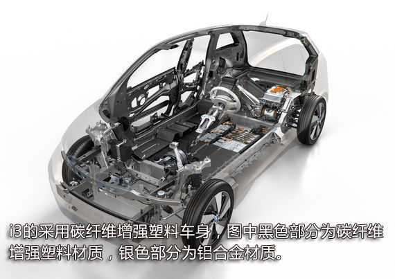 值得一提的是,這款創新的寶馬i3車型將使用碳纖維增強塑料車身,整備質量僅為1,195千克,但車身強度卻大幅提升。為了盡可能的優化操控質感,i3前后軸荷分配為50:50,同時電動機后置,懸掛結構為前麥弗遜式獨立懸掛和后五連桿式獨立懸掛,并可配備155/70 R19輪胎和19英寸合金輪轂。