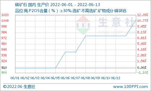 6月13日,國內(nèi)磷礦石市場重心整體再向高端靠攏,30%品位磷礦石市場價格突破千元大關(guān),參考1010元 ... 查閱全文