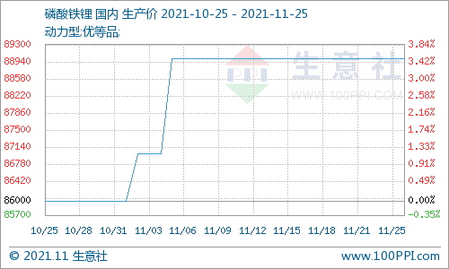 截止11月25日國內動力型優等品磷酸鐵鋰均價在89000.00元/噸,本周磷酸鐵鋰市場價格運行平穩,整體 ... 查閱全文