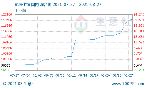 8月氫氧化鋰市場(chǎng)漲勢(shì)強(qiáng)勁 預(yù)計(jì)國(guó)內(nèi)短期將高位運(yùn)行