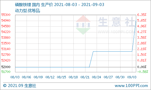 截止9月3日本周國(guó)內(nèi)動(dòng)力型優(yōu)等品磷酸鐵鋰均價(jià)在55000.00元/噸,本周磷酸鐵鋰市場(chǎng)價(jià)格上漲,商談重 ... 查閱全文