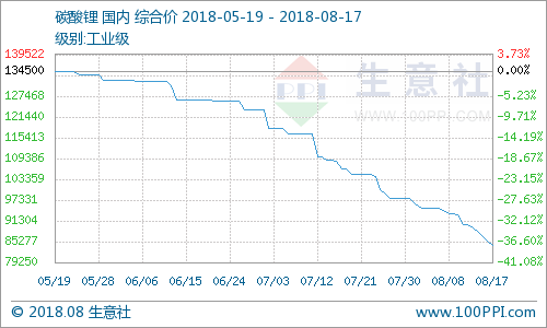 8月電池級碳酸鋰均價102503.78元/噸 部分大廠開始減產