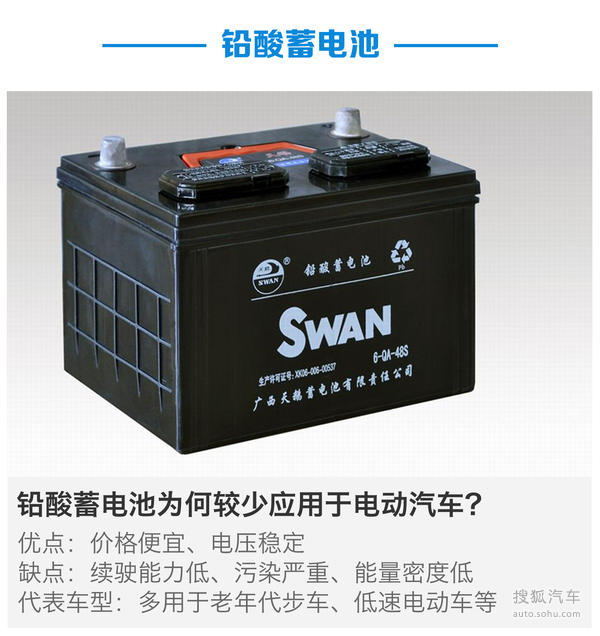 鉛酸蓄電池是目前應用比較廣泛的電池,主要優點是電壓穩定、價格便宜;缺點是比能低(即每公斤蓄電池存儲的電能)、使用壽命短和日常維護頻繁。老式電池一般壽命在2年左右,而且需定期檢查電解液的高度并添加蒸餾水,不過隨著科技的發展,鉛酸蓄電池的壽命變得更長而且維護也更簡單了。鉛酸電池也一樣,由于能量密度低,所以它的體積很龐大。此外,由于其成分是硫酸電解質,因此,廢棄后對環境的污染相對嚴重。而其最大的缺點在于,續駛能力比較低,所以,應用于純電動汽車上并不能滿足人們日常需求。從目前來看,鉛酸電池多應用于低速電動車,特別是老年代步車、電動自行車等。