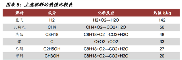氫氣是常見燃料中熱值最高的(142KJ/g),約是石油的 3 倍,煤炭的 4.5 倍。 這 意味著消耗相同質量的石油、煤炭和氫氣,氫氣所提供的能量最大,這一特性是滿足 汽車、航空航天等實現輕量化的重要因素之一。