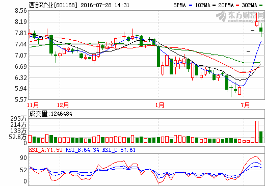 西部礦業(yè):2016上半年凈利潤(rùn)0.31億元 同比下降26.26%