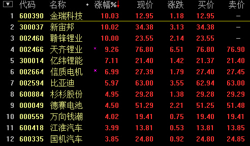 9:56,A股新能源汽車板塊漲1.98%,金瑞科技等3股漲停,近6成個股翻紅。
