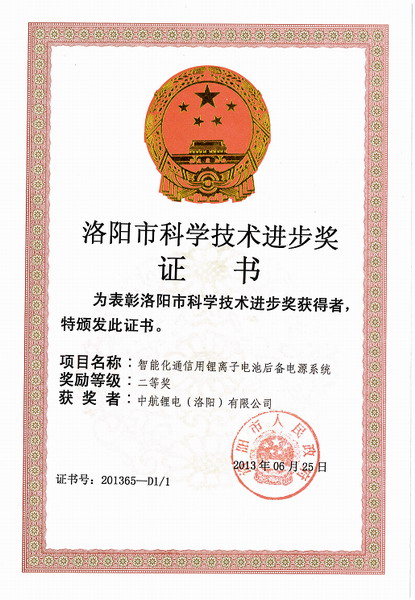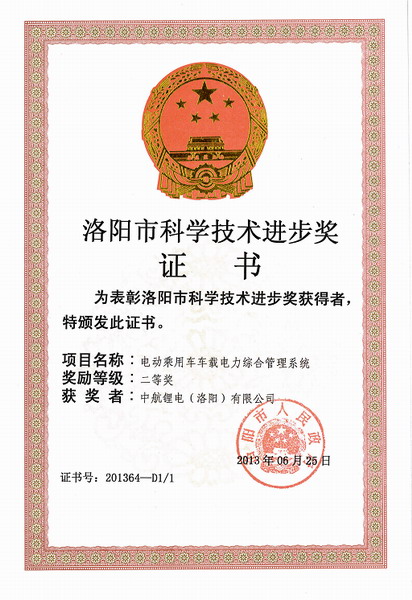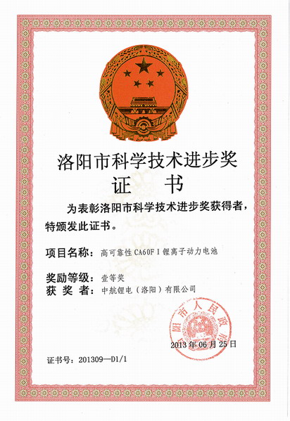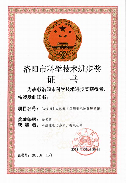 近日,中航鋰電四項科技成果成功獲得洛陽市科學技術進步獎,其中,“CA-V10Ⅰ大電流主動均衡電池管理系統 ” 和“ 高可靠性CA60FⅠ鋰離子動力電池 ” 兩項科技成果獲得洛陽市科學技術進步一等獎, “智能化通信用鋰離子后備電源系統 ”和“ 電動乘用車車載電力綜合管理系統 ”兩項科技成果獲得洛陽市科學技術進步二等獎,標志著公司在高性能電池、電池管理系統及電源系統等方面的研發取得重大突破,研究成果得到業內專家的認可,為公司產品的系列化發展和進一步拓展市場奠定了良好的基礎。
