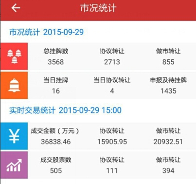 其中,協議轉做市2家。截止9月30日,新三板市場總掛牌數達3585家,協議轉讓企業2728家,做市轉讓企業857家;申報及待掛牌的企業共1556家。