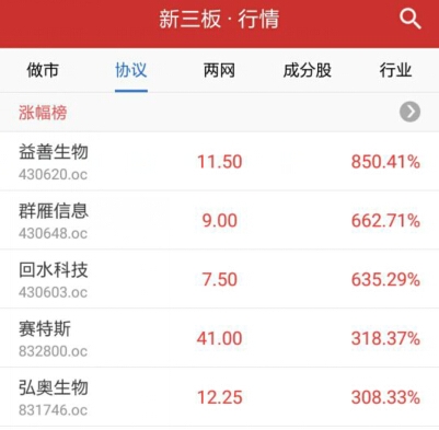 做市轉讓漲幅前五