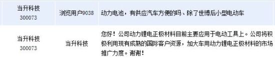 11月11日訊 當升科技(300073)周二下午在全景網互動平臺向投資者表示,公司動力鋰電正極材料目前主要應用于電動工具上。公司稱,將積極利用現有成熟的國際客戶資源,加大車用動力鋰電正極材料的市場推廣力度。當升科技主要從事鈷酸鋰、多元材料、錳酸鋰等小型鋰電、動力鋰電正極材料的研發、生產和銷售業務。