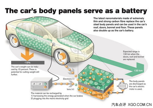 該技術(shù)是由碳纖維、聚合酯、納米材料所制成的電池組與超級(jí)電容