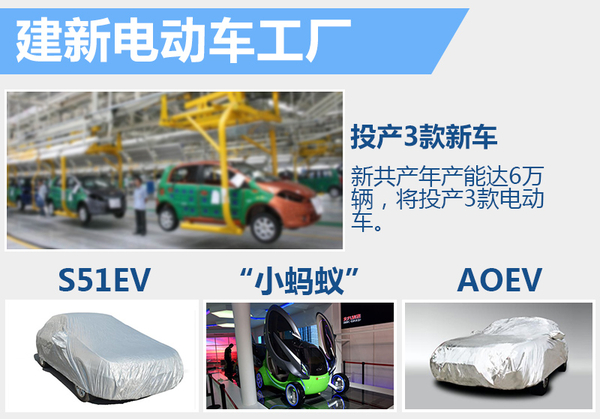 奇瑞新電動(dòng)車生產(chǎn)項(xiàng)目位于蕪湖弋江區(qū)高新技術(shù)開發(fā)區(qū),項(xiàng)目總投資15.6億元人民幣,由奇瑞汽車股份有限公司獨(dú)資建設(shè),有望于年內(nèi)正式投產(chǎn)。新工廠將投產(chǎn)鋁車身骨架純電動(dòng)乘用車,年產(chǎn)能可達(dá)6萬輛,主要生產(chǎn)S51EV、小螞蟻、AOEV等系列電動(dòng)車。此外新工廠投產(chǎn)后,將成為奇瑞兌現(xiàn)年產(chǎn)20萬輛新能源車產(chǎn)能目標(biāo)的重要一環(huán)。