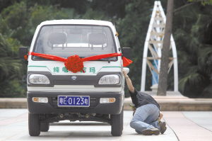 “目前推廣新能源汽車的有太多局限性,比如在地域上。”謝志強表示,因為新能源汽車未列入《車輛生產(chǎn)企業(yè)及產(chǎn)品公告》目錄,目前不論上路資質(zhì)、還是續(xù)航里程,新能源汽車都開不出高明,“開電動車的車主,去趟佛山市區(qū)都得轉(zhuǎn)搭城巴。”