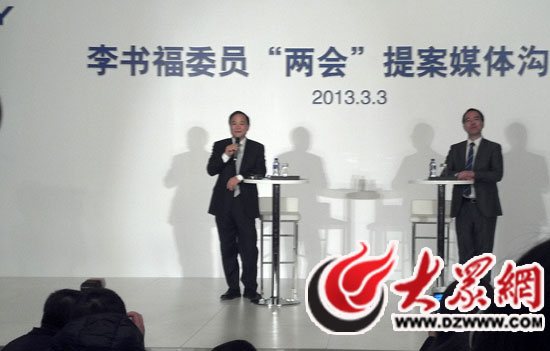 十二屆全國政協委員、吉利控股集團董事長李書福向記者介紹他準備向全國政協十二屆政協一次會議提交的3份提案。(大眾網特派記者赫洋 攝)
