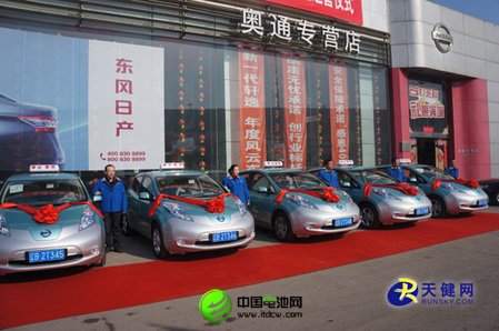 圖為“聆風(fēng)”東風(fēng)日產(chǎn)純電動(dòng)出租車。