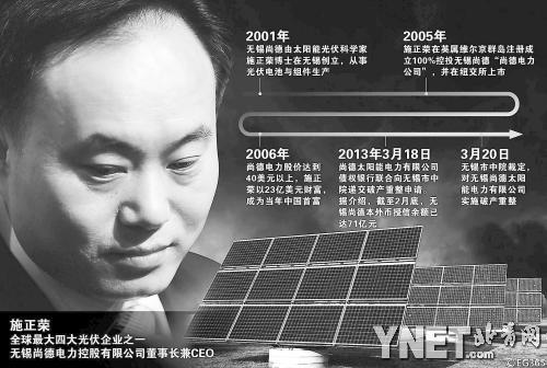 對于無錫尚德而言,牽頭重組的無錫國聯(lián)也并不是陌生人。2000年時,施正榮還只是一個頂著博士頭銜的技術人員,當時他拎著筆記本電腦在國內四處找投資,但處處碰壁。“那時國內對太陽能光伏產業(yè)沒有了解,地方政府也不敢貿然投資,不少人甚至以為他是騙子。”
