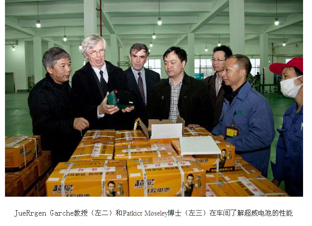 20日上午,JueRrgen Garche教授一行一到長興,便徑直驅車趕到超威眾成公司實地考察。在集團技術顧問、福州大學博士生導師郭永榔教授和超威研究院副院長柯克博士的陪同下,兩位國際行業專家仔細查看了眾成公司的生產流水線,對超威鉛酸動力電池的制造技術和研發水平給予了高度贊賞,認為超威在動力電池研發制造的某些方面已經趕超世界先進水平。
