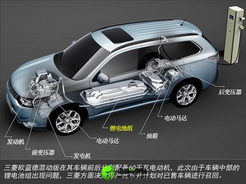 據悉目前已經有兩起有關電池隱患事故的報告。歐藍德插電式混動車搭載一臺2.0L發動機,在其車身前后各安裝一臺60千瓦的電動機。此次故障源于其所配備的鋰電池在充電過程中有可能導致電池過熱并無法正常散熱,從而引發起火隱患。據了解目前三菱的i-MiEV電動車也同樣在使用此款鋰電池。