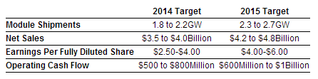 公司預計2014年營收35——40億美元,每股收益2.5——4美元;2015年營收42——48億美元,每股收益4——6美元。華爾街預期該公司2014年營收33.49億美元,每股收益3.27美元;2015年營收36.53億美元,每股收益3.36美元。