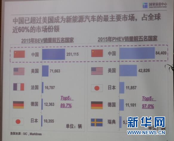 2015年全球新能源汽車銷售56.4萬輛,以純電動汽車為主,同比增長了102%。其中,中國的貢獻率最為明顯,已經(jīng)超越美國成為新能源汽車最主要市場,占全球近60%的市場份額(純電動和插電混動均位于第一位)。與中國在2015年迅猛發(fā)展相比,美國電動汽車銷售量去年同比減少3.6%。