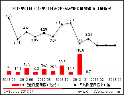 圖4 2012年04月-2013年04月VC/PE機構IPO退出賬面回報情況