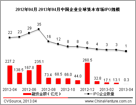 圖1 2012年04月-2013年04月中國企業全球資本市場IPO規模