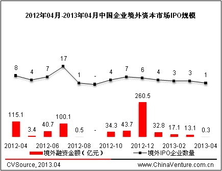 圖3 2012年04月-2013年04月中國企業境外資本市場IPO規模