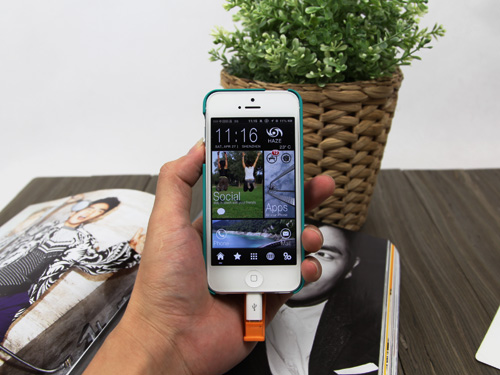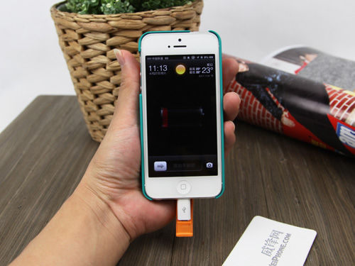 不過這里不得不提該款產品小編認為的一個小小不足。該款產品配備的充電線是MicroUSB接口,而iPhone 5使用的是lighting接口,雖說該款產品為iPhone 5用戶提供了轉接口,不影響使用,但是多重轉接還是有點不太方便,也不太好看。如果是lighting接口就會非常完美了。
