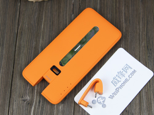 包裝的正面是透明的,透過可以看到里邊的背夾電源。本次評測的背夾電源是橙色,而據小編從樂泡官網了解,該產品還有湖藍色。從色彩來講該款移動電源偏暖色,比較符合年輕人的口味。